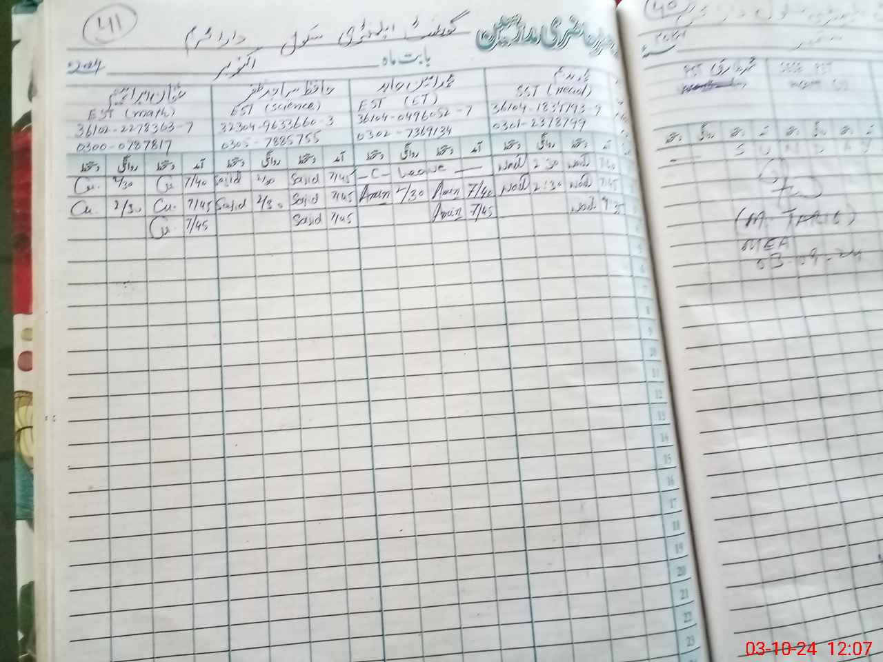 | Name: Mu**** Na**** Designation: (School Headmaster's/Headmistress's) SST (MATH PHYSICS) Phone/Cell Number: 03**** |