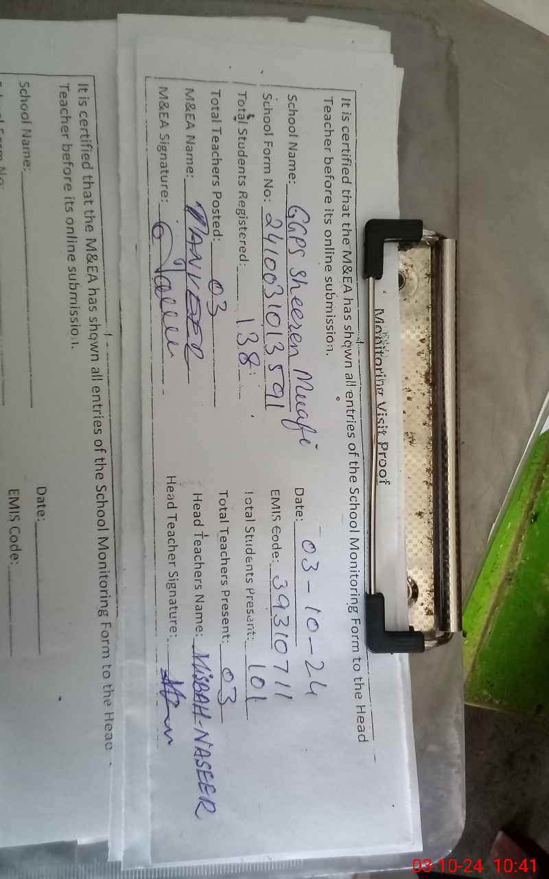 | EMIS Code: 39310711 | Name of School: GGPS SHEEREN MUAFI | |||