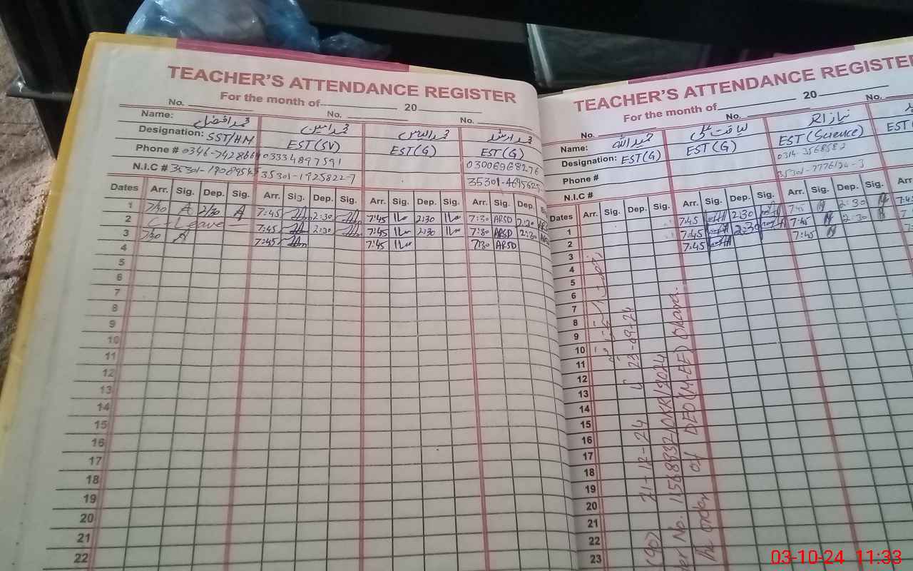| CNIC | Full Name | Designation | R/C | Absence During Last Calender Month |