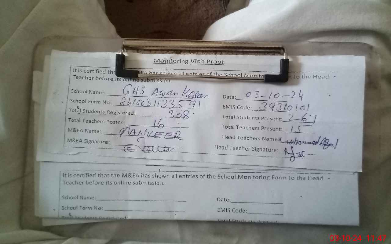 | EMIS Code: 39310101 | Name of School: GHS AWAN KALAN | |||