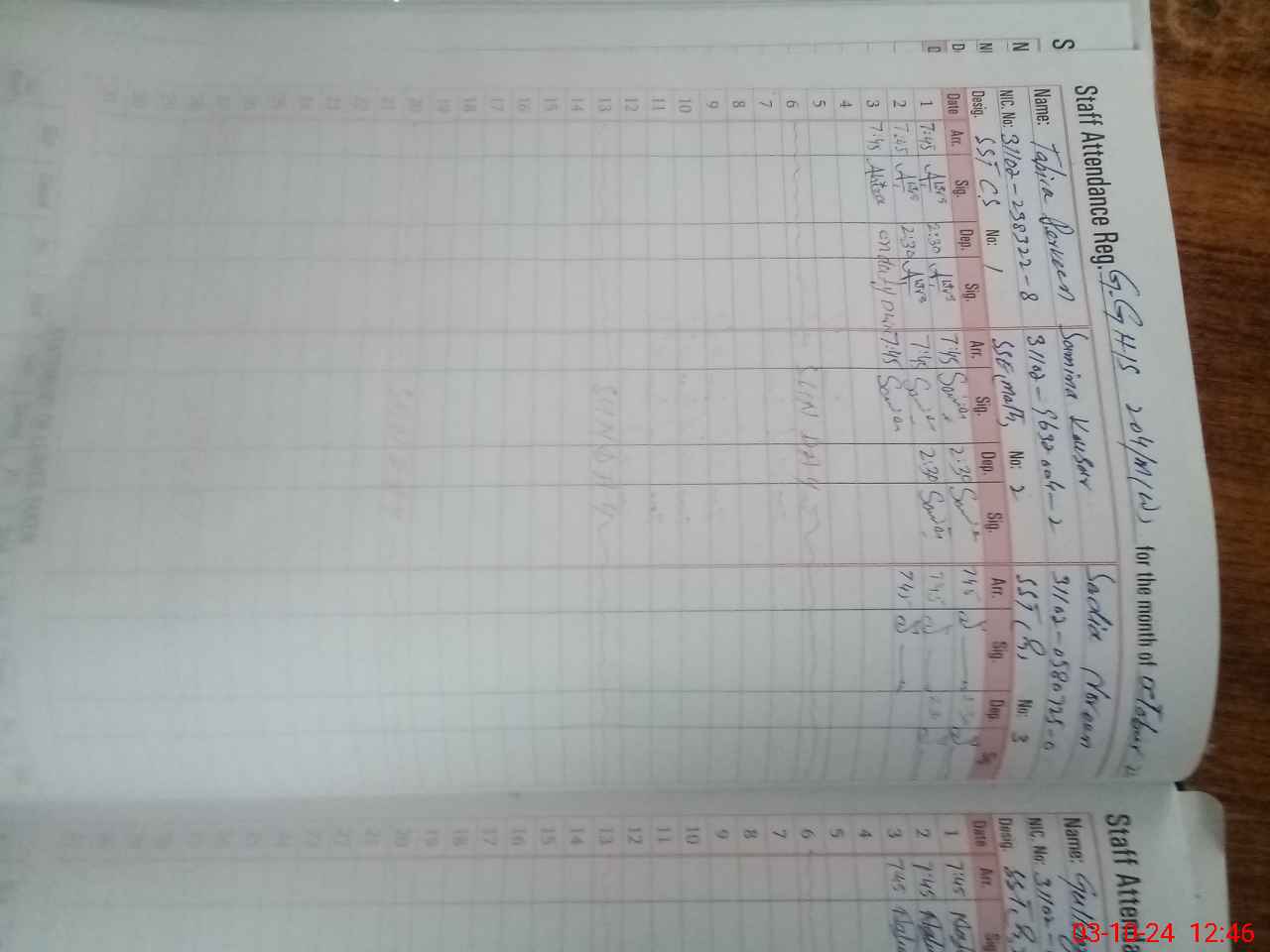 | CNIC | Full Name | Designation | R/C | Absence During Last Calender Month |
