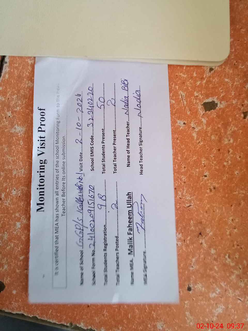 | EMIS Code: 32340220 | Name of School: GGPS KALLAR WALI NO. 1 | |||
