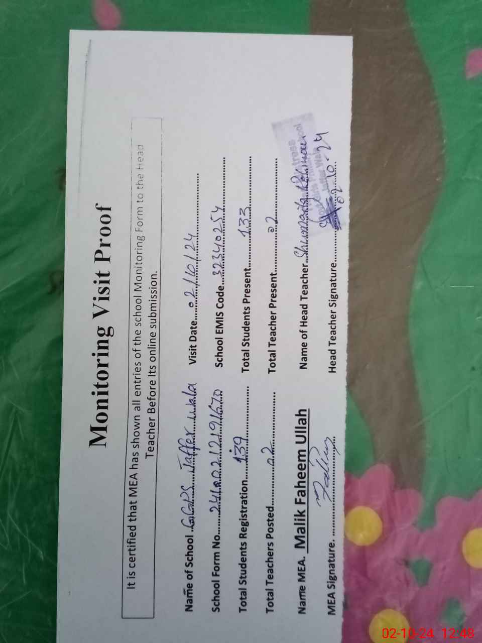 | EMIS Code: 32340254 | Name of School: GGPS JAFFER WALA | |||