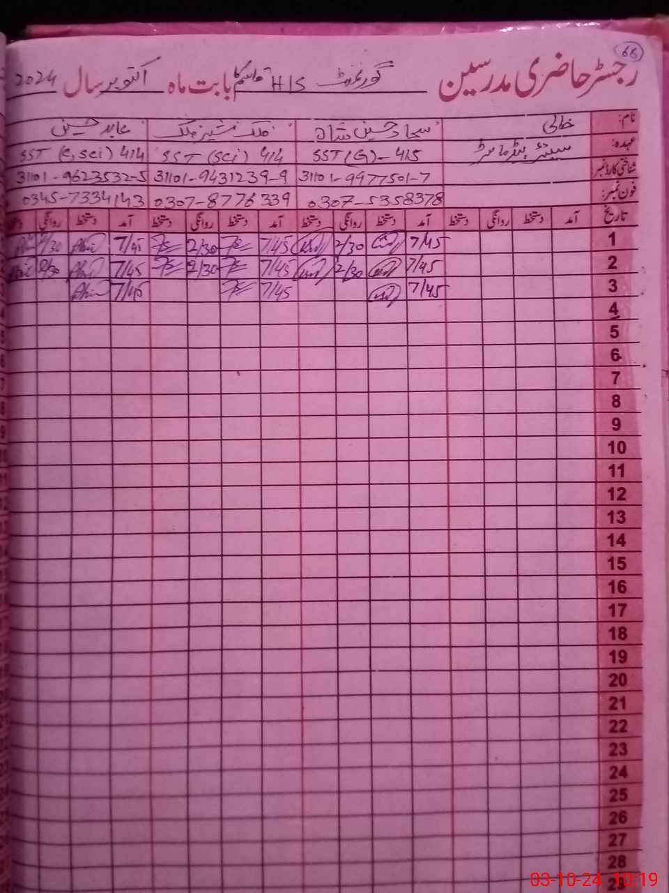 | Name: Ab**** Hu**** Designation: (School Headmaster's/Headmistress's) SST IT Phone/Cell Number: 03**** |