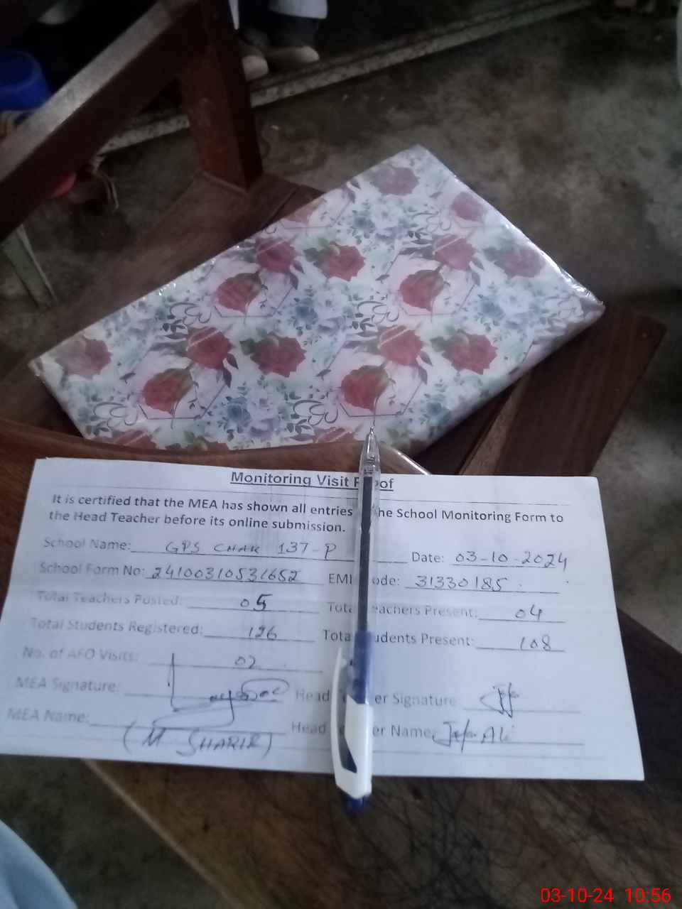 | Attendance Register | Head Teacher | MEA with School | Visit Proof |