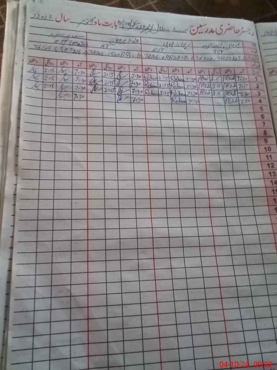 | CNIC | Full Name | Designation | R/C | Absence During Last Calender Month |