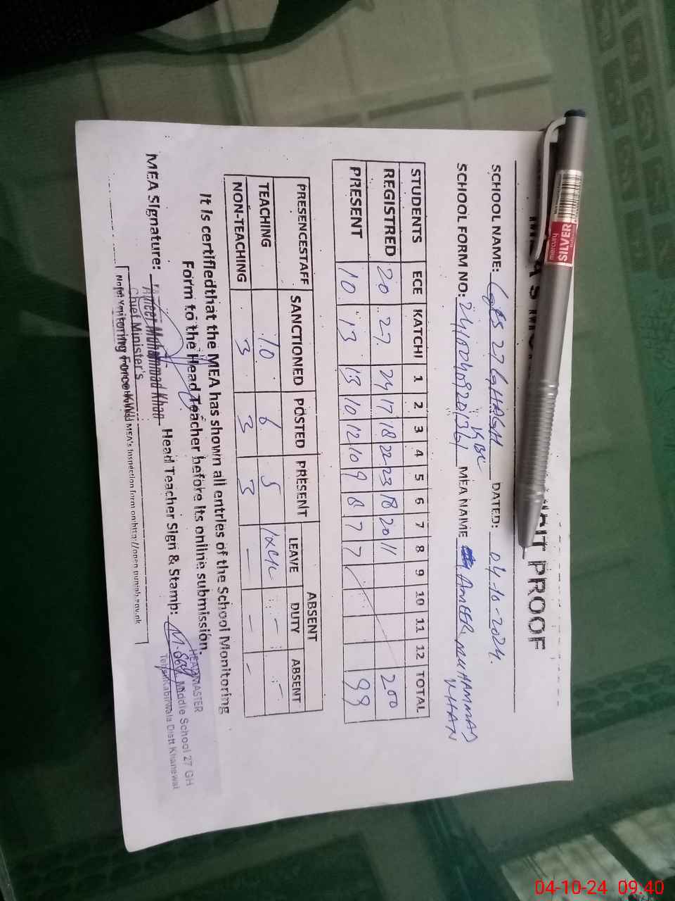 | EMIS Code: 36410079 | Name of School: GES 27 GHAGH, P/O ADDA 25 PUL, ABDUL HAKIM | |||