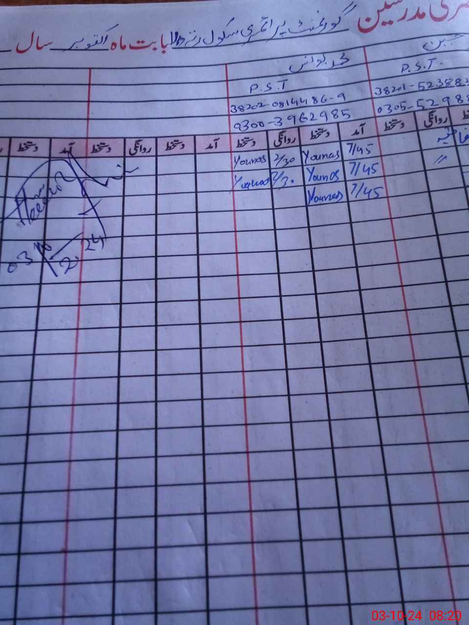 | Name: MU**** WA**** Designation: (School Headmaster's/Headmistress's) PST/PTC/JV Phone/Cell Number: 03**** |