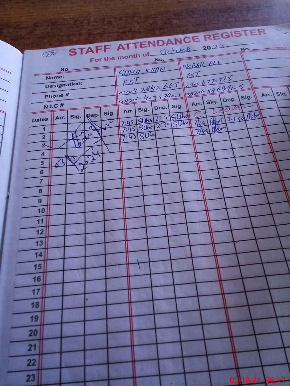 | Name: AB**** Designation: (School Headmaster's/Headmistress's) PST/PTC/JV Phone/Cell Number: 03**** |