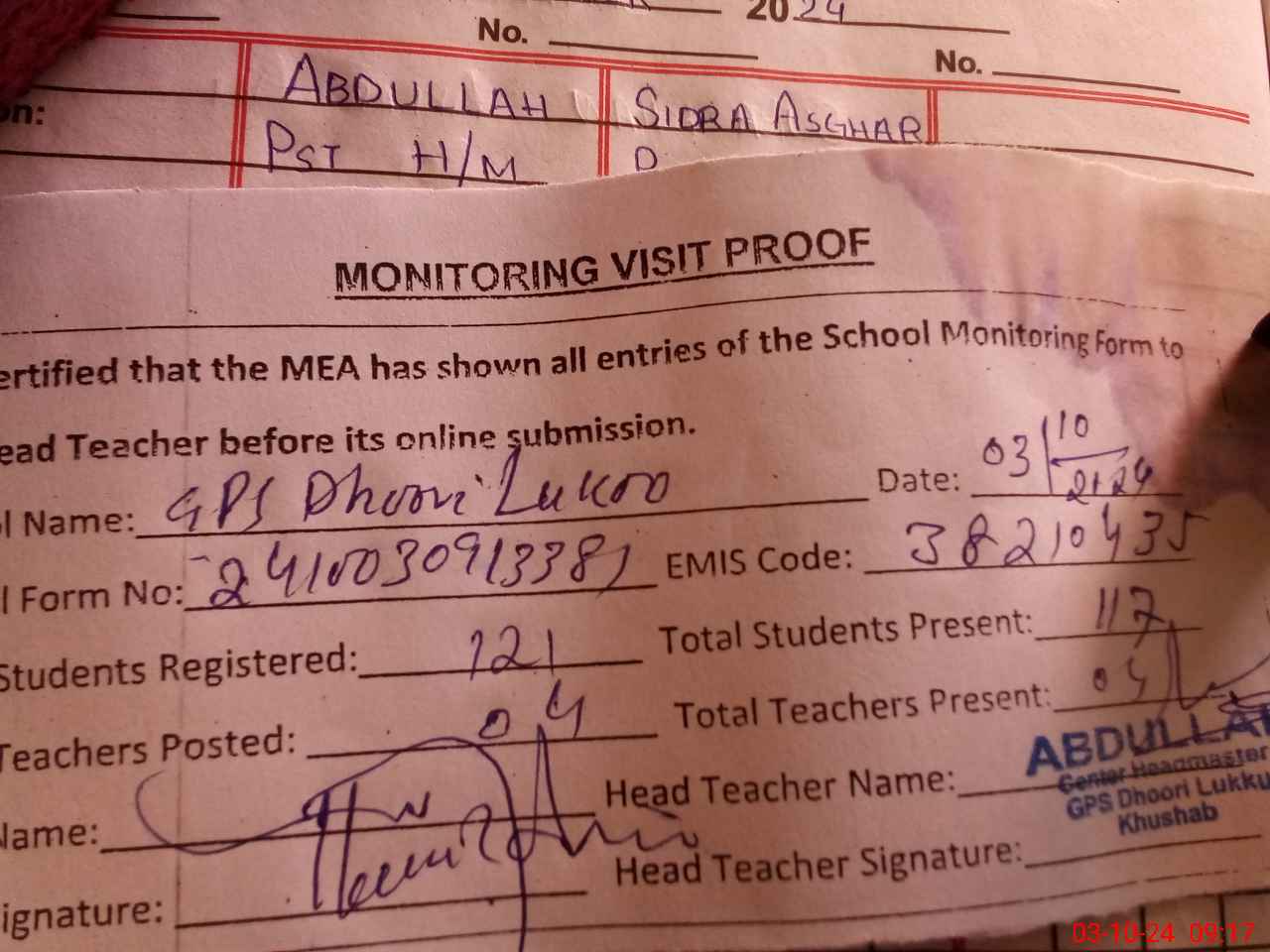 | EMIS Code: 38210435 | Name of School: GPS DHORI LUKOO | |||