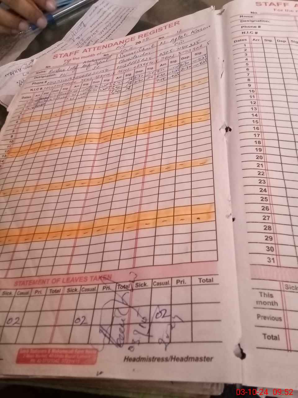 | CNIC | Full Name | Designation | R/C | Absence During Last Calender Month |