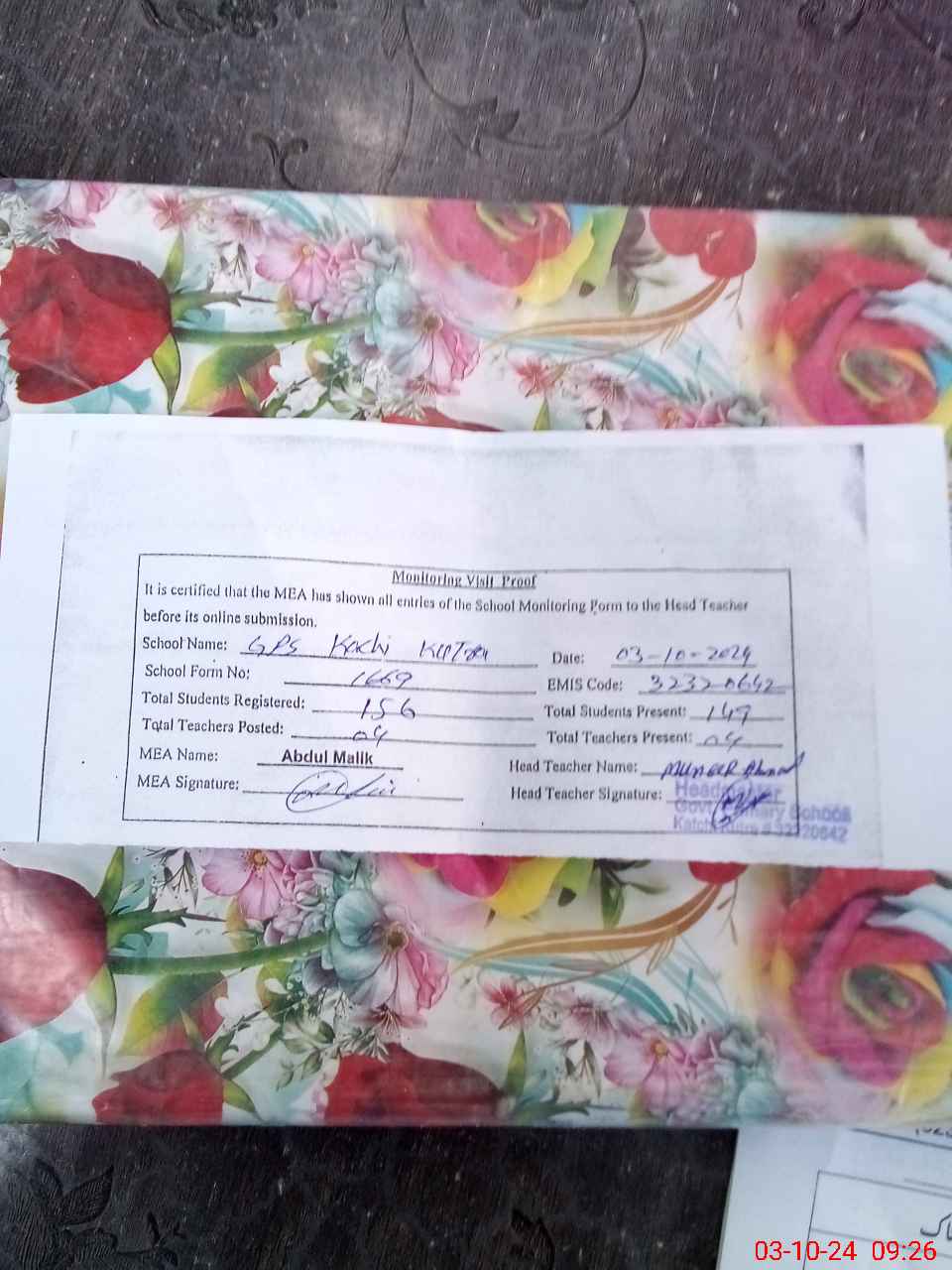 | EMIS Code: 32320642 | Name of School: GPS KACHI KUTRA | |||