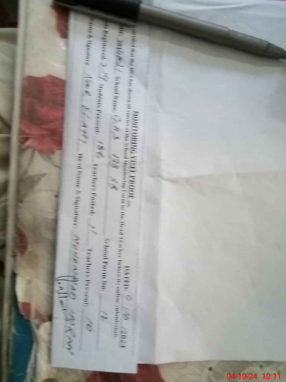 | Monitoring Date: 04-10-2024 | Start Time: 04-10-2024 09:54 AM | End Time: 04-10-2024 10:31 AM | Name of MEA: NO**** EL**** | |