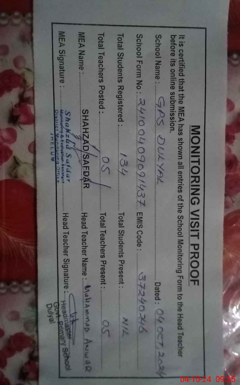 | EMIS Code: 37240246 | Name of School: GPS DULYAL | |||