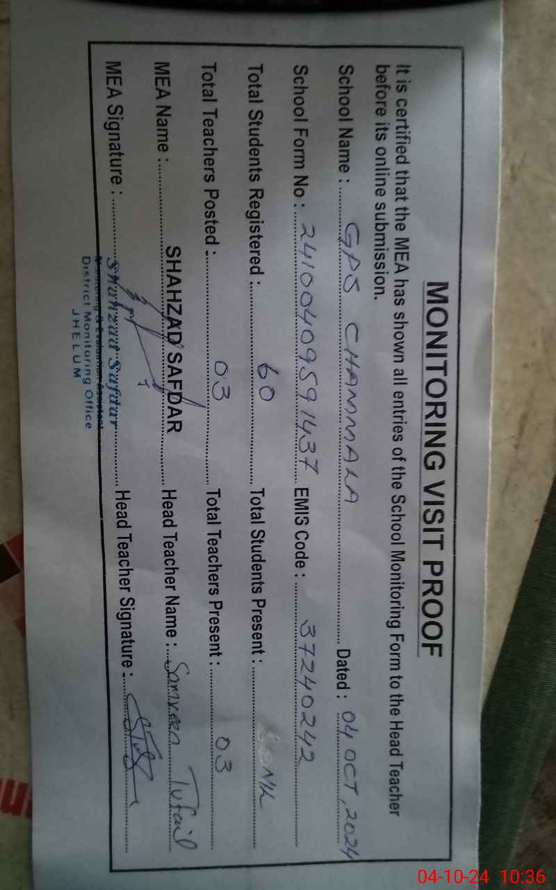 | EMIS Code: 37240242 | Name of School: GPS CHAMMALA | |||