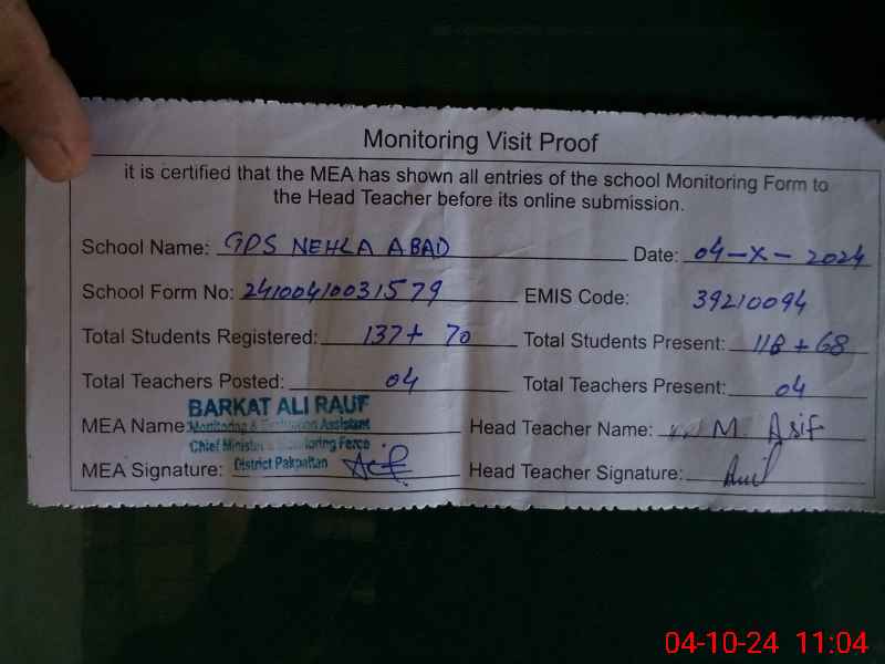 | EMIS Code: 39210094 | Name of School: GPS NEHLA ABAD P/O DHUPAI | |||