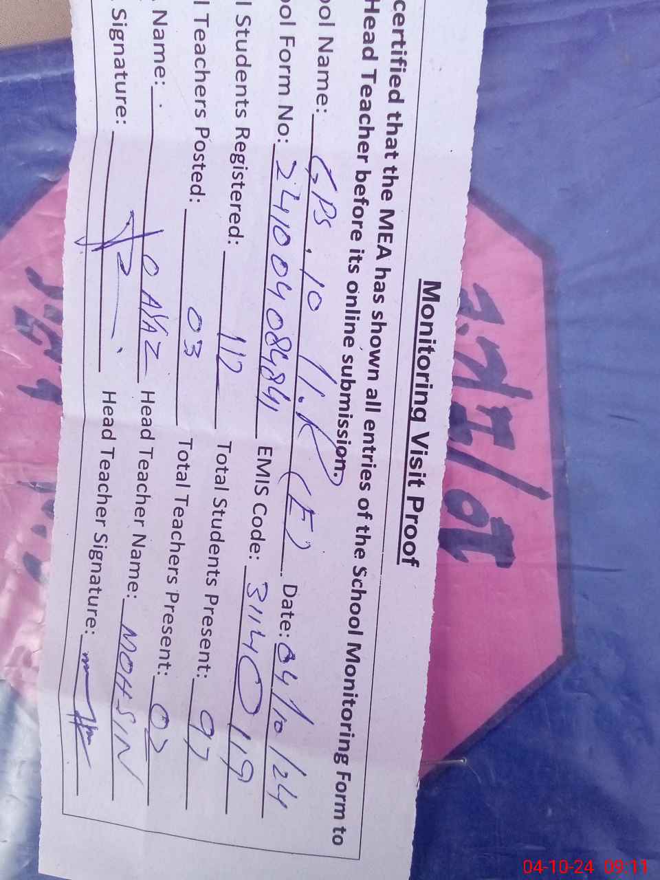 | EMIS Code: 31140119 | Name of School: GPS CHAK NO 10/1-R E | |||