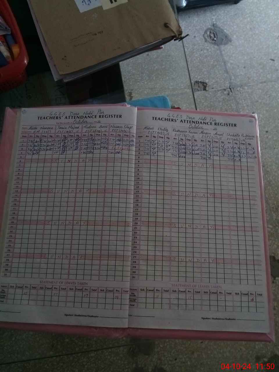| Leave | Duty | Absent | Maternity | Medical | Ex- Pak |