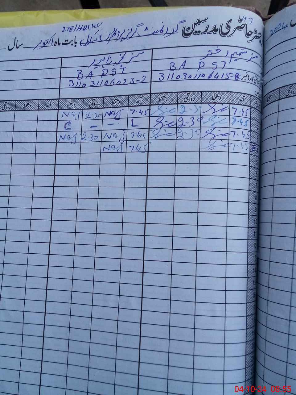 | Name: SH**** AK**** Designation: (School Headmaster's/Headmistress's) PTC/JV Phone/Cell Number: 03**** |