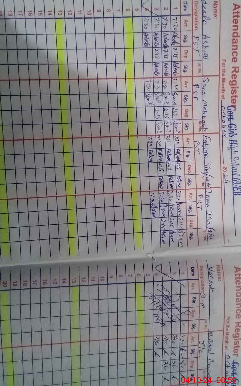 | CNIC | Full Name | Designation | R/C | Absence During Last Calender Month |