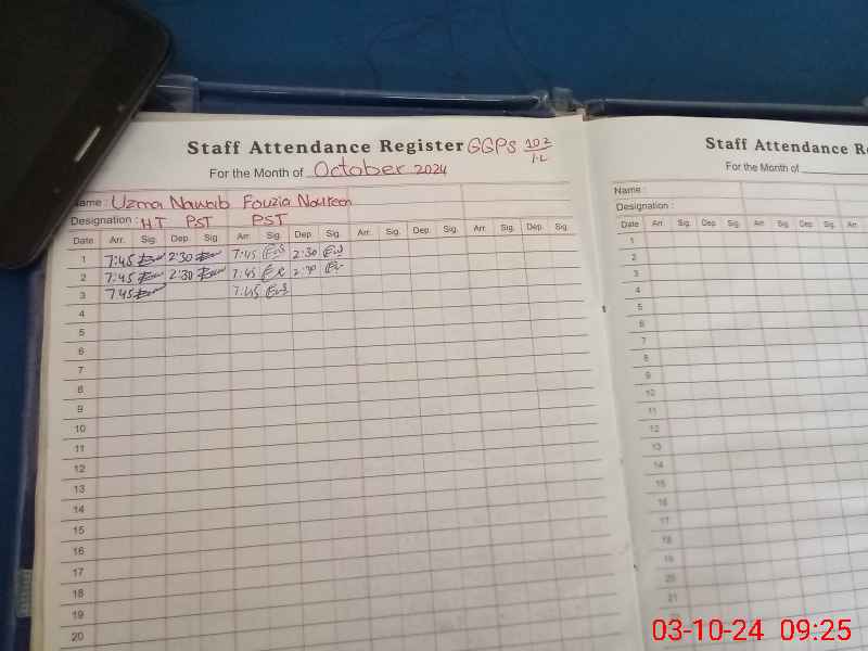 | Name: Uz**** Na**** Designation: (School Headmaster's/Headmistress's) PST Phone/Cell Number: 03**** |