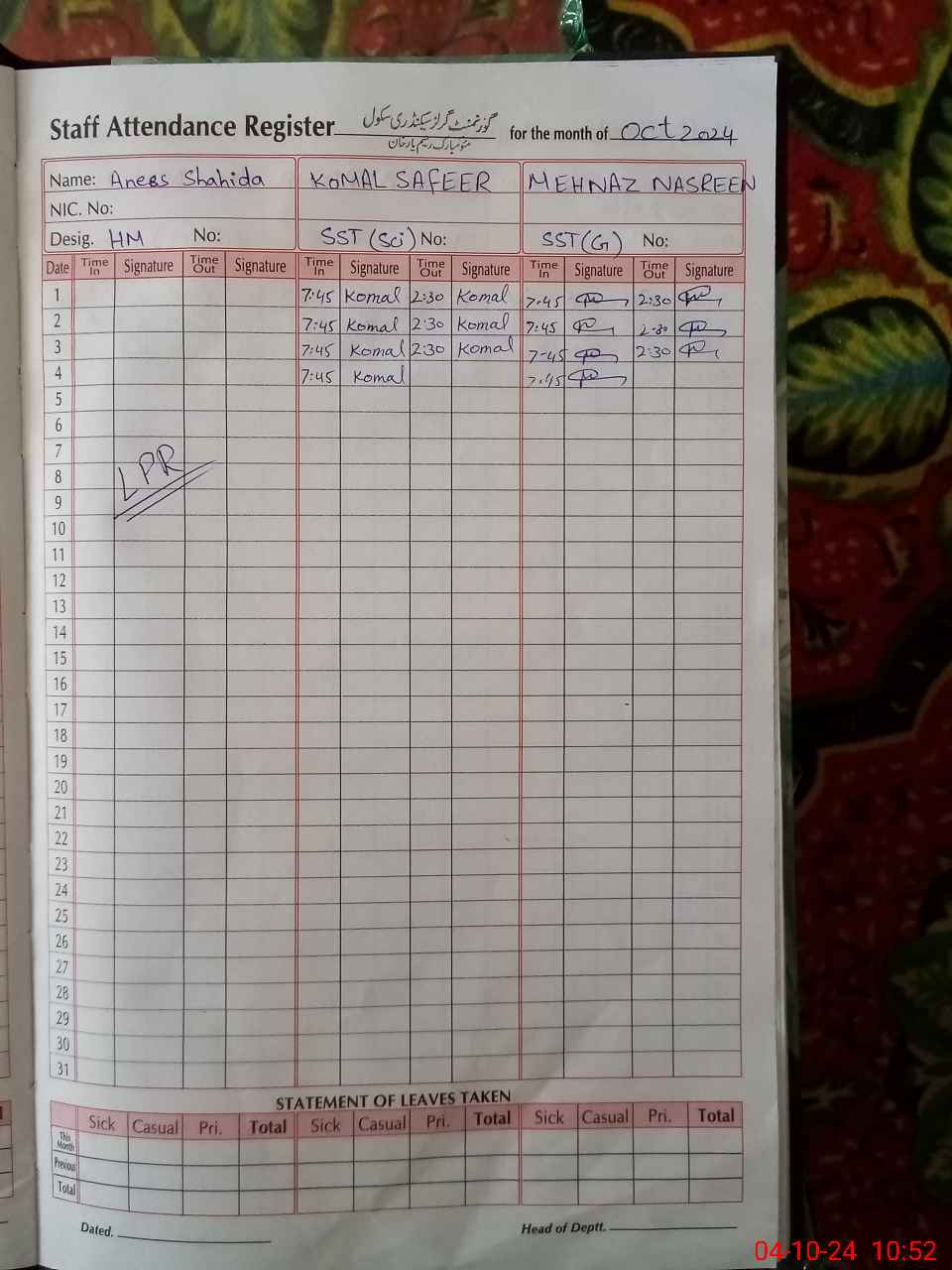 | 31**** | Za**** Al**** | JNR CLK | 0 | 0 | 0 | 0 | 0 | 0 | 0 | 0 | 0 | Casual | |