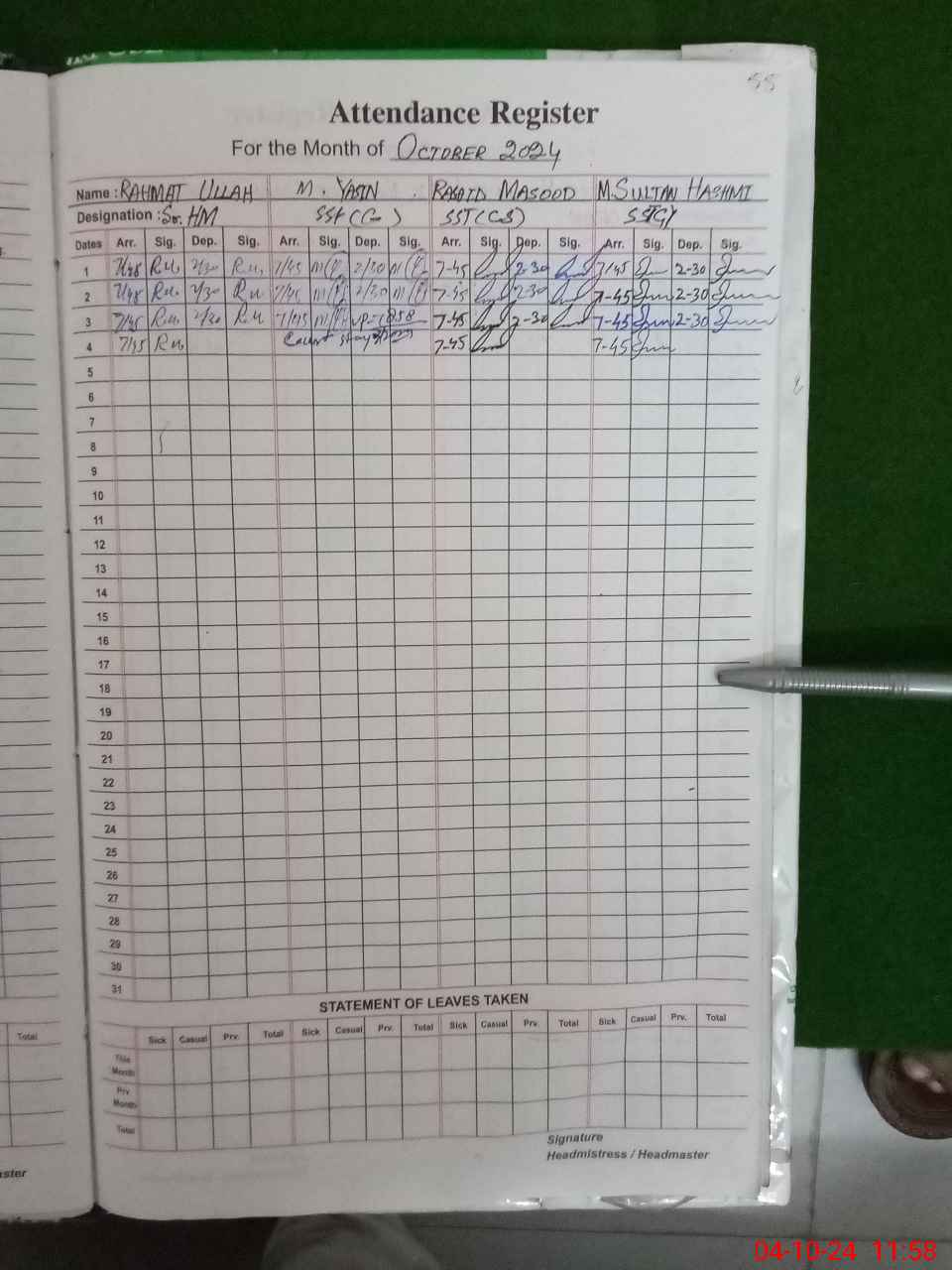 | 31**** | Mu**** Ya**** | Regular | 0 | 0 | 0 | 0 | 0 | 0 | 0 | 0 | 0 | Absent (Un-Authorized) | |