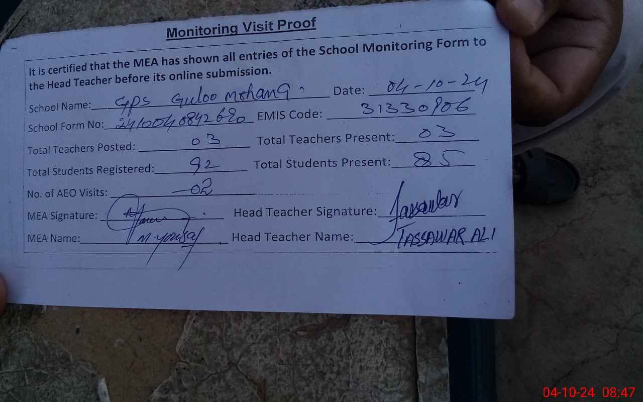 | EMIS Code: 31330906 | Name of School: GPS GULLU MOHANA | |||