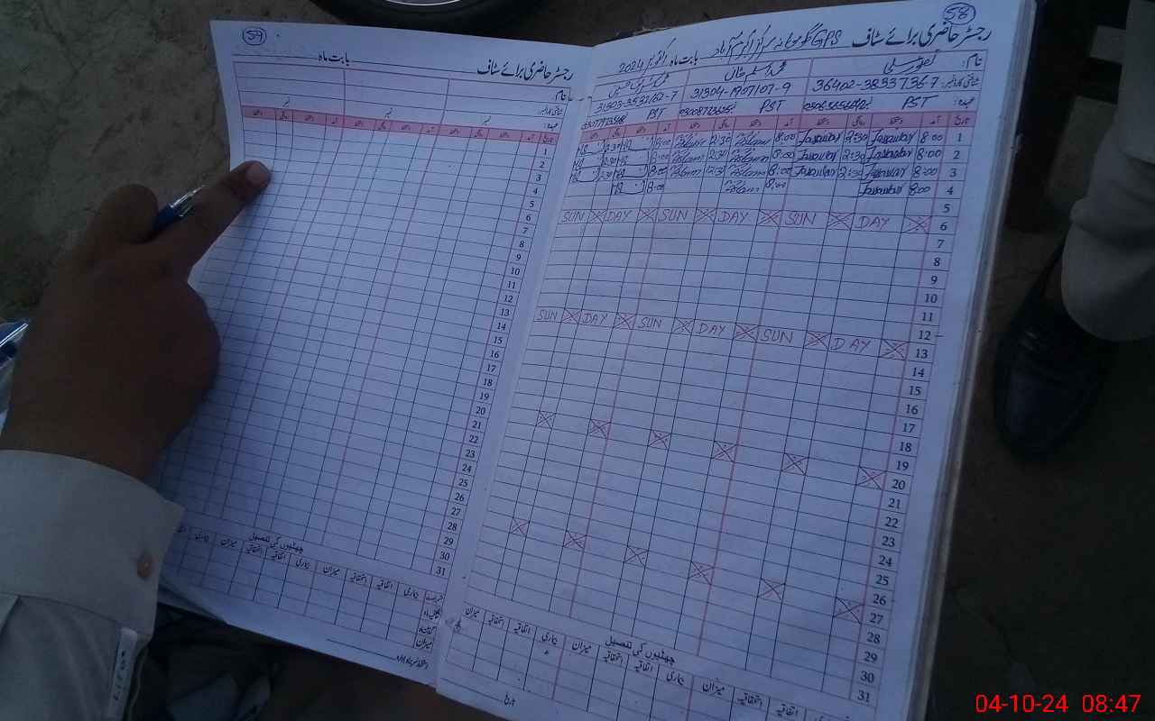 | CNIC | Full Name | Designation | R/C | Absence During Last Calender Month |