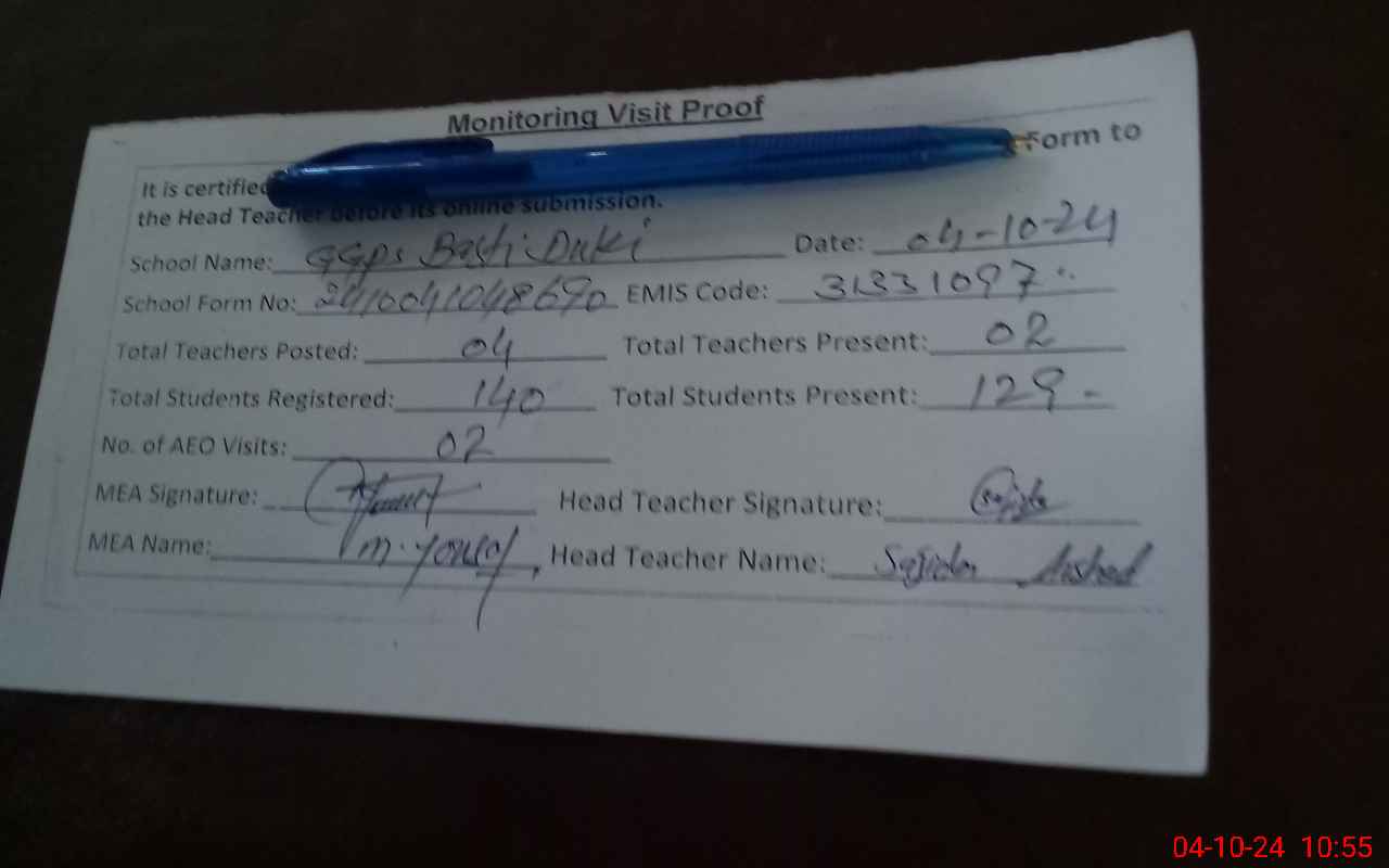 | EMIS Code: 31331097 | Name of School: GGPS BASTI DUKKI | |||