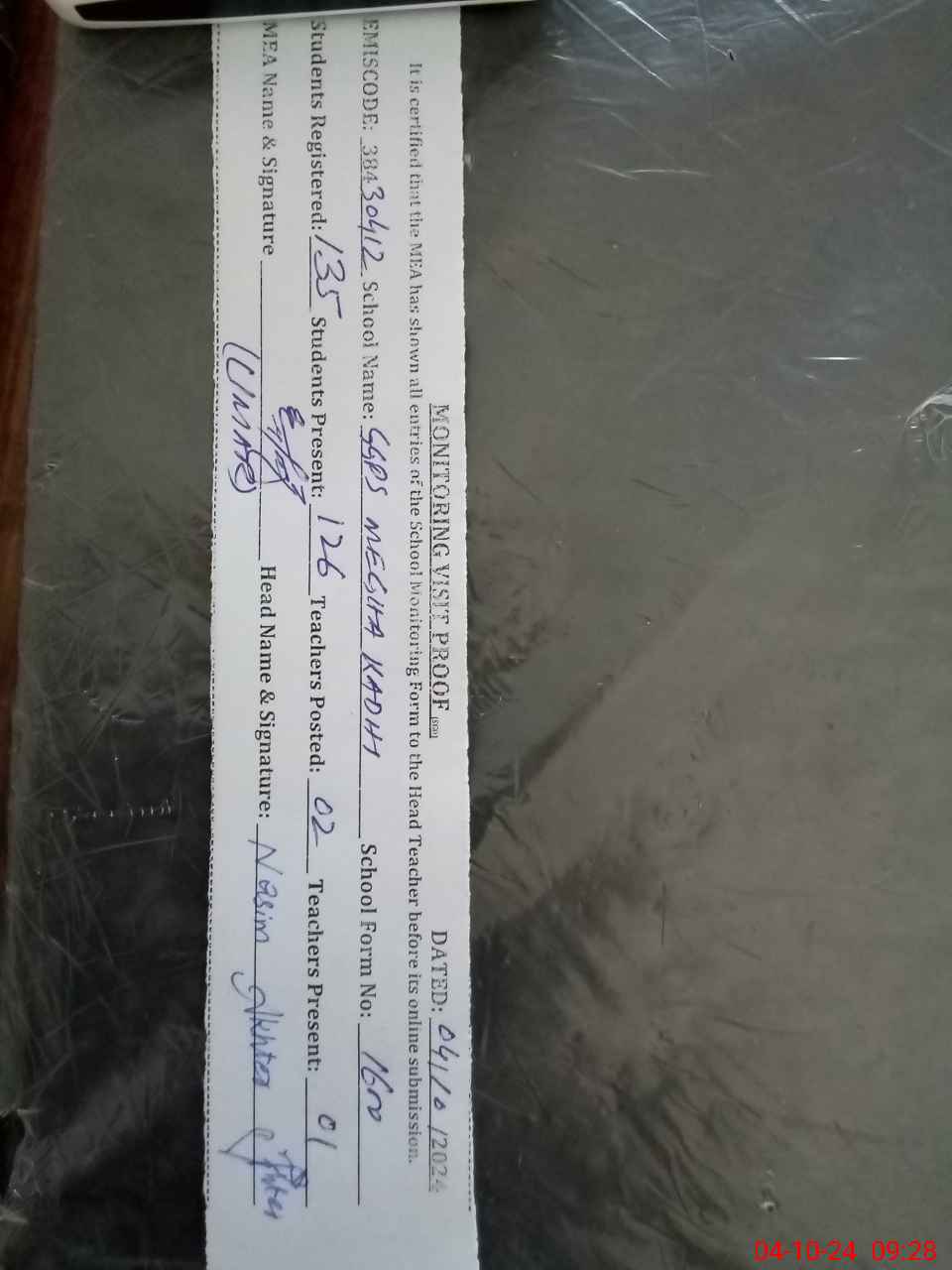 | EMIS Code: 38430412 | Name of School: GGPS MEGHA KADHI | |||