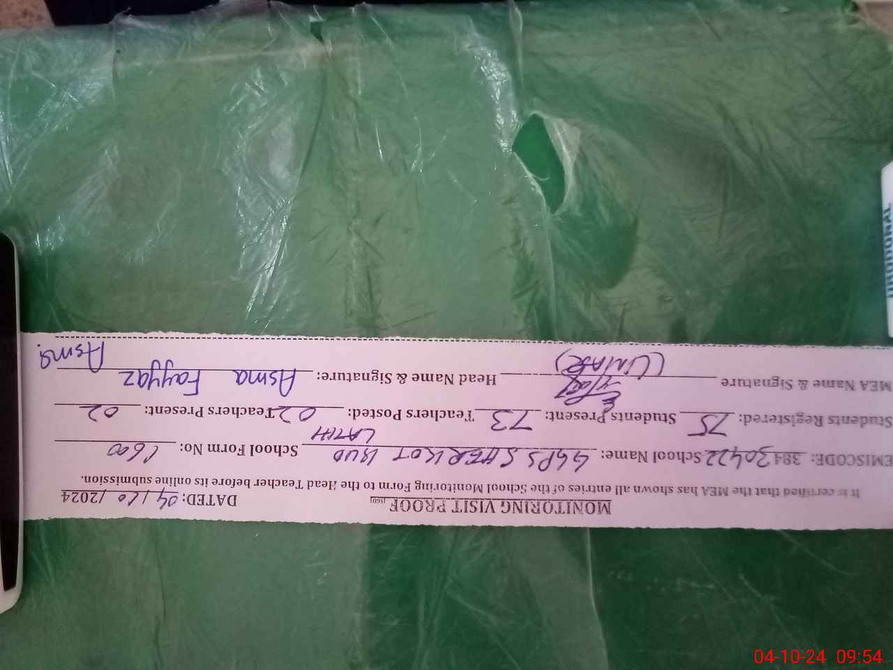 | Attendance Register | Head Teacher | MEA with School | Visit Proof |