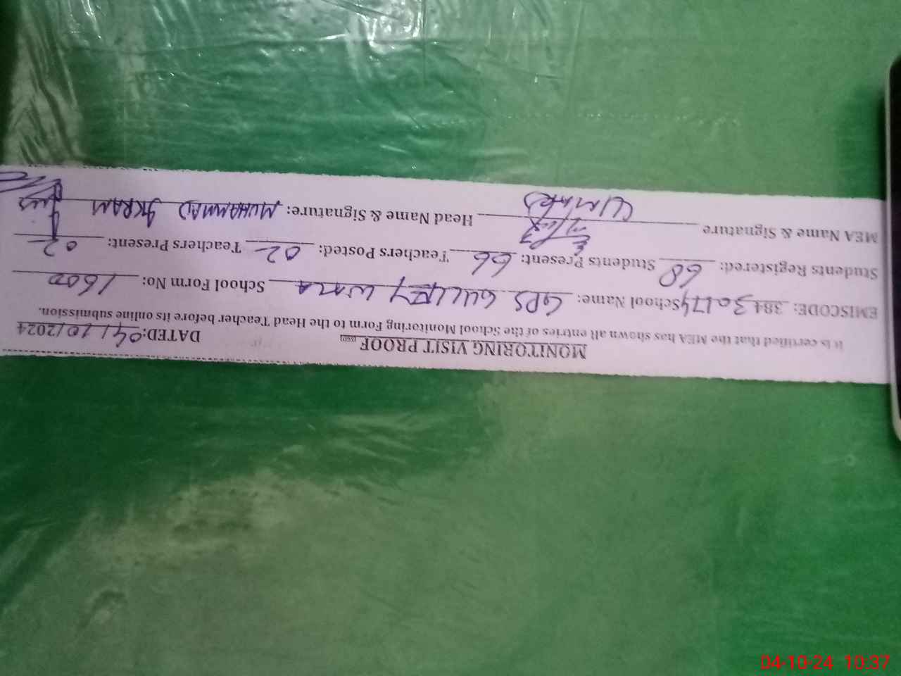 | Monitoring Date: 04-10-2024 | Start Time: 04-10-2024 10:13 AM | End Time: 04-10-2024 10:38 AM | Name of MEA: UM**** DR**** | |