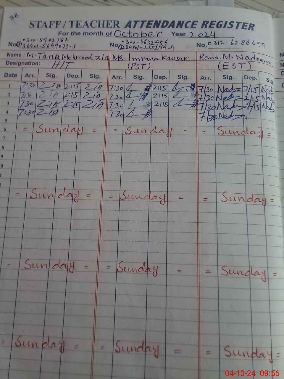 | Name: Ta**** Me**** Zi**** Designation: (School Headmaster's/Headmistress's) PST Phone/Cell Number: 03**** |
