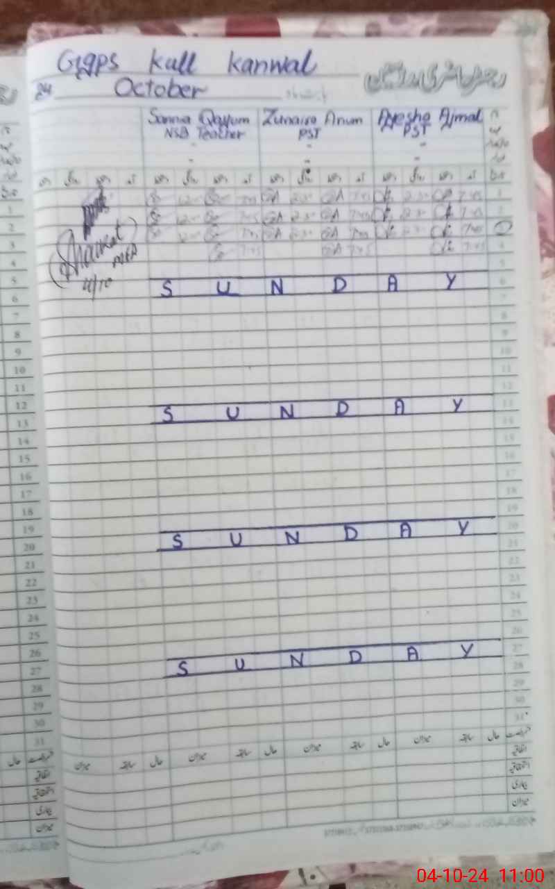 | CNIC | Full Name | Designation | R/C | Absence During Last Calender Month |