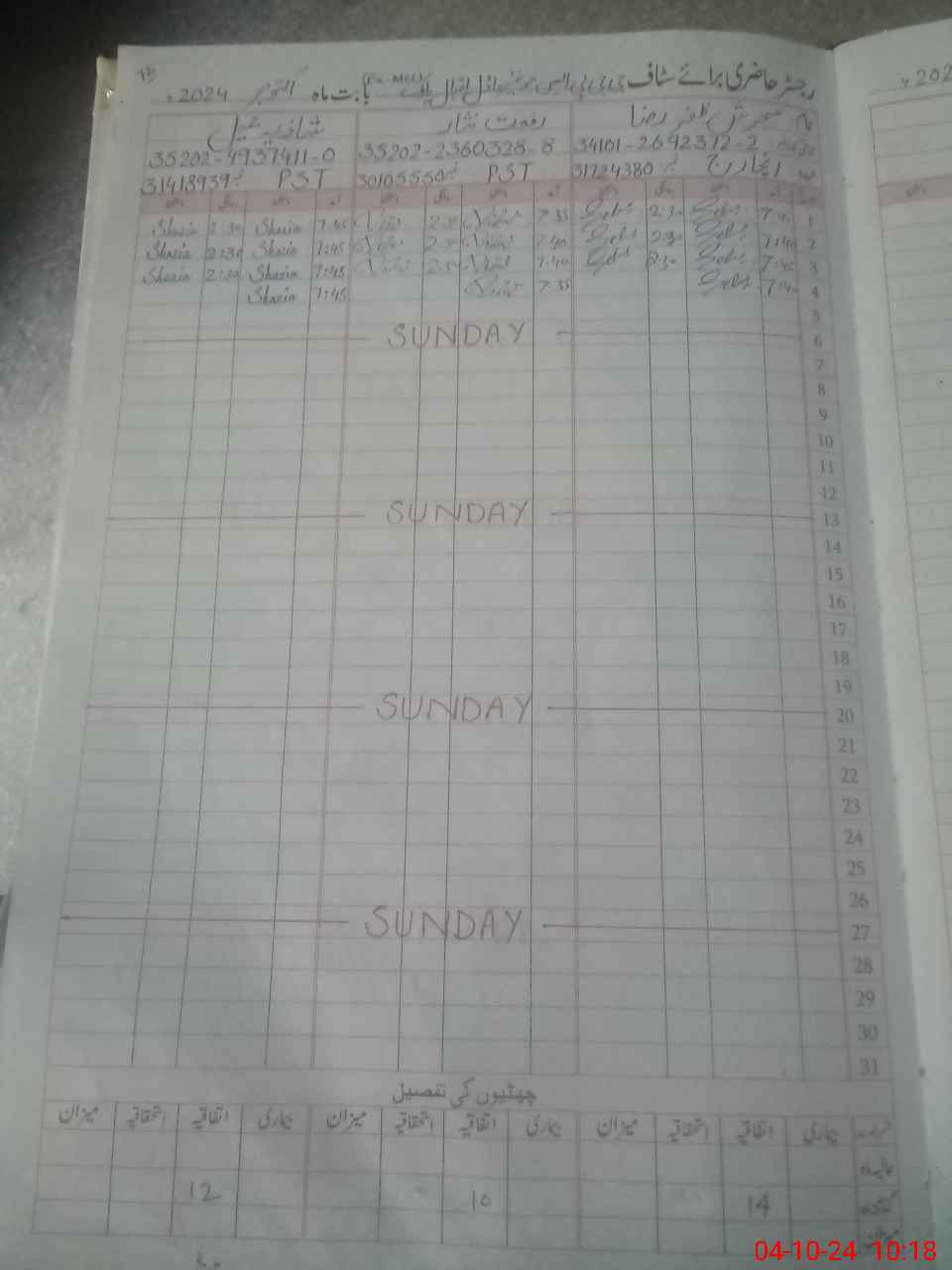 | 35**** | Uz**** Ra**** | PST | Regular | 30 | 0 | 0 | 30 | 0 | 0 | 0 | 0 | 0 | Maternity |