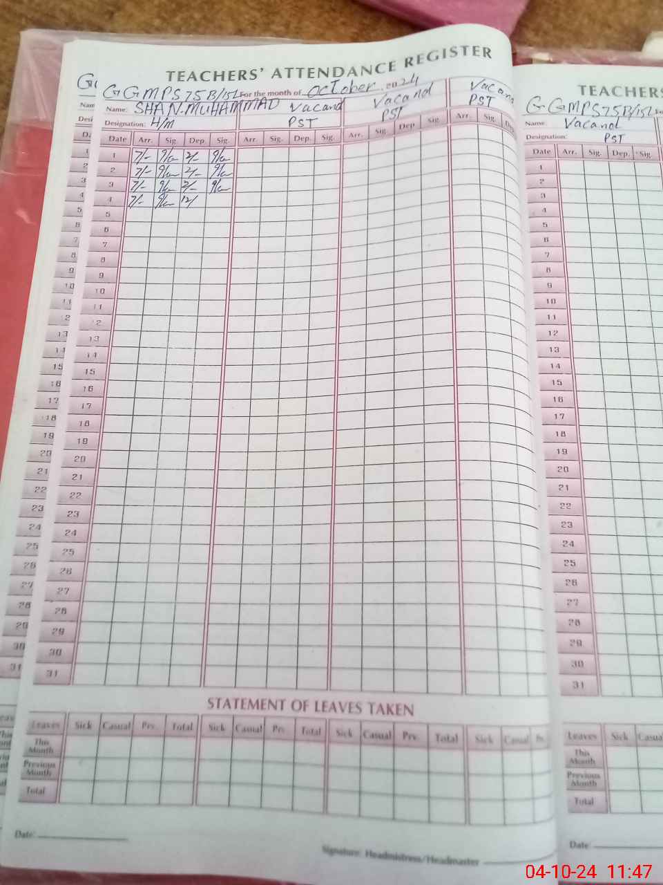 | 36**** | Ba**** Sh**** | 1 | 0 | 0 | 30 | 0 | 0 | 0 | 0 | 0 | 0 | Absent (Un-Authorized) | |