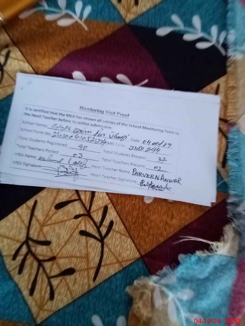 | EMIS Code: 31150294 | Name of School: GGPS QAIM PUR JHANGI | |||