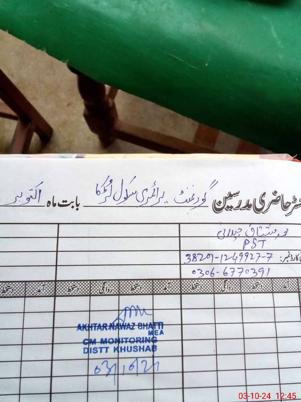 | Name: So**** Ah**** Designation: (School Headmaster's/Headmistress's) PST/PTC/JV Phone/Cell Number: 03**** |