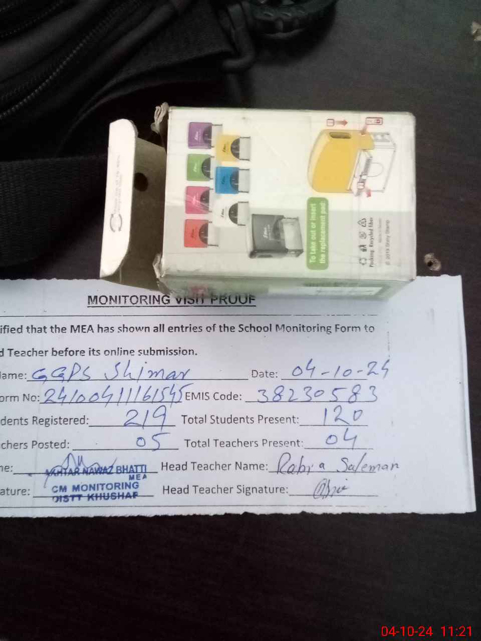 | EMIS Code: 38230583 | Name of School: GGPS SHIMAR | |||