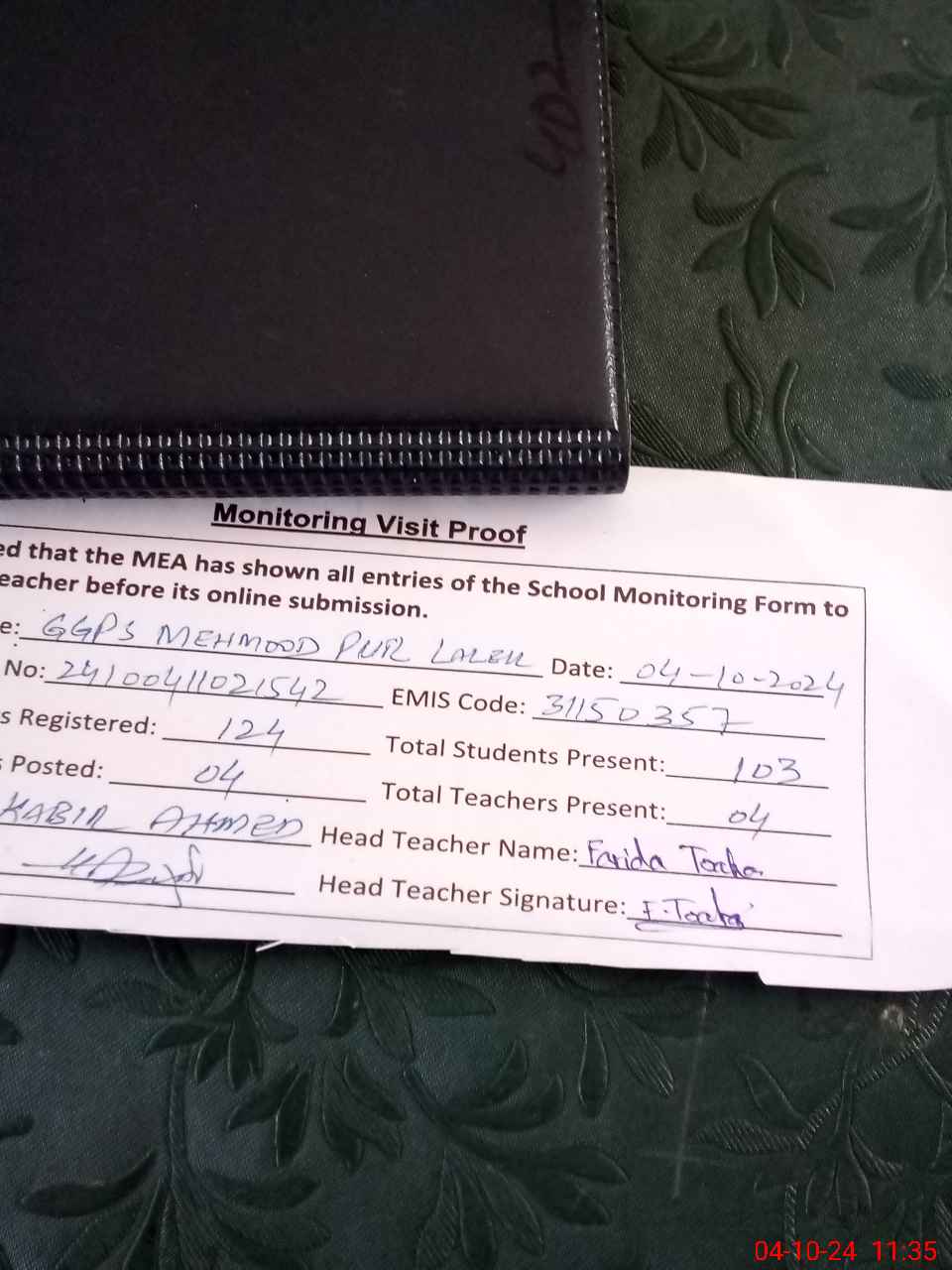 | EMIS Code: 31150357 | Name of School: GGPS MEHMOOD PUR LALAKEKA | |||