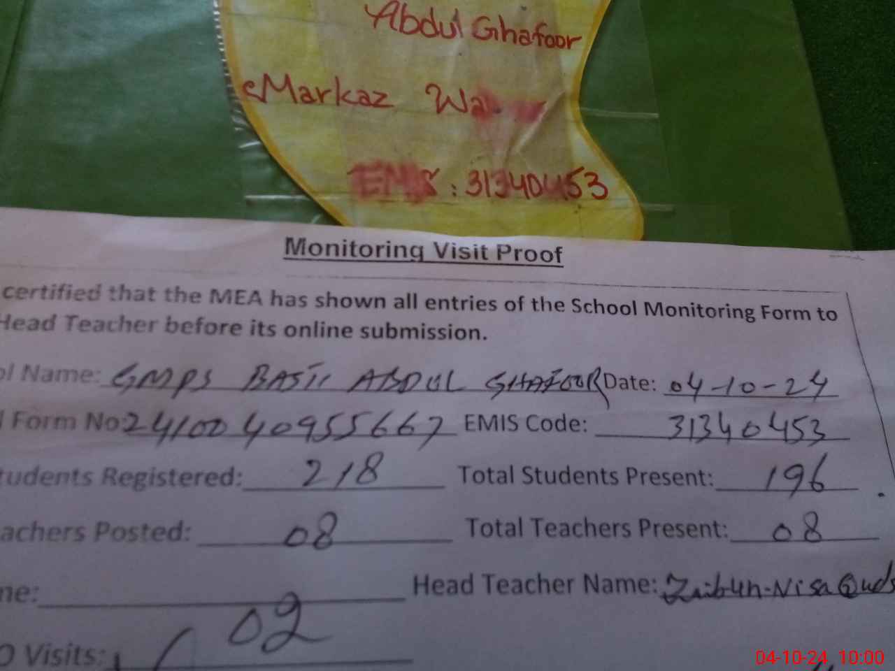 | EMIS Code: 31340453 | Name of School: GMPS BASTI ABDUL GHAFOOR | |||