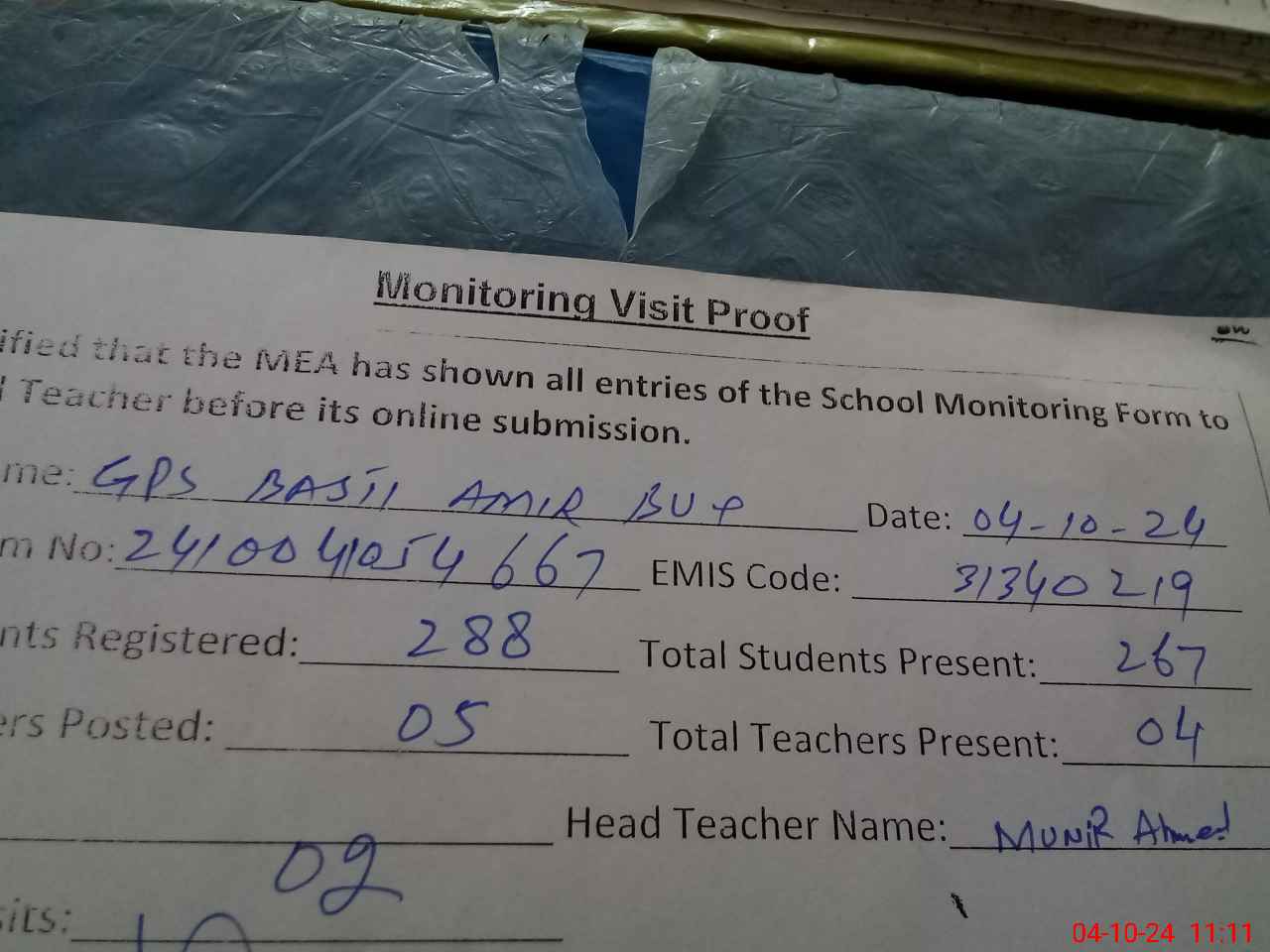 | EMIS Code: 31340219 | Name of School: GPS BASTI AMIR BUX | |||