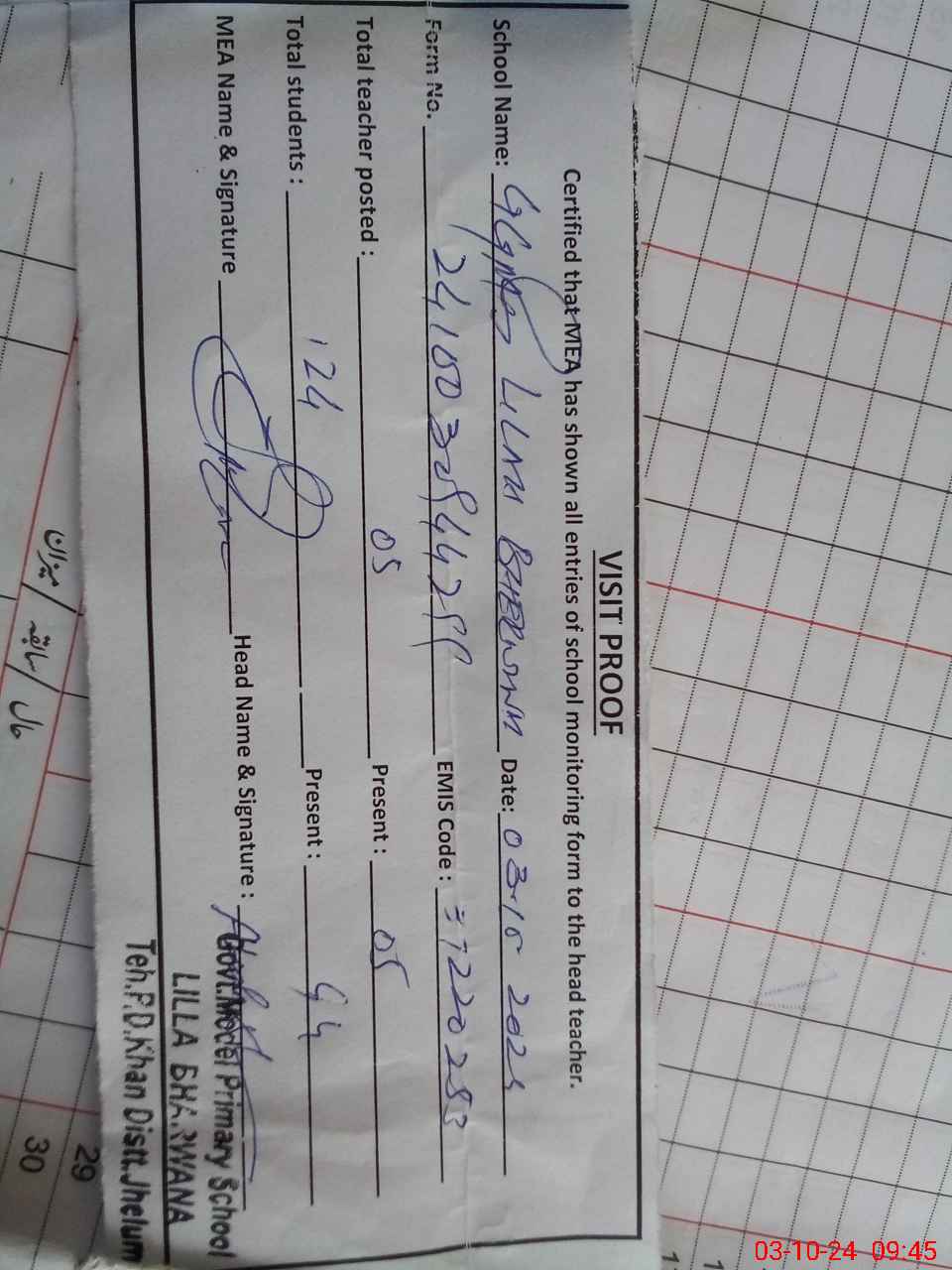 | EMIS Code: 37220253 | Name of School: GGMPS LILLA BHERWANA | |||