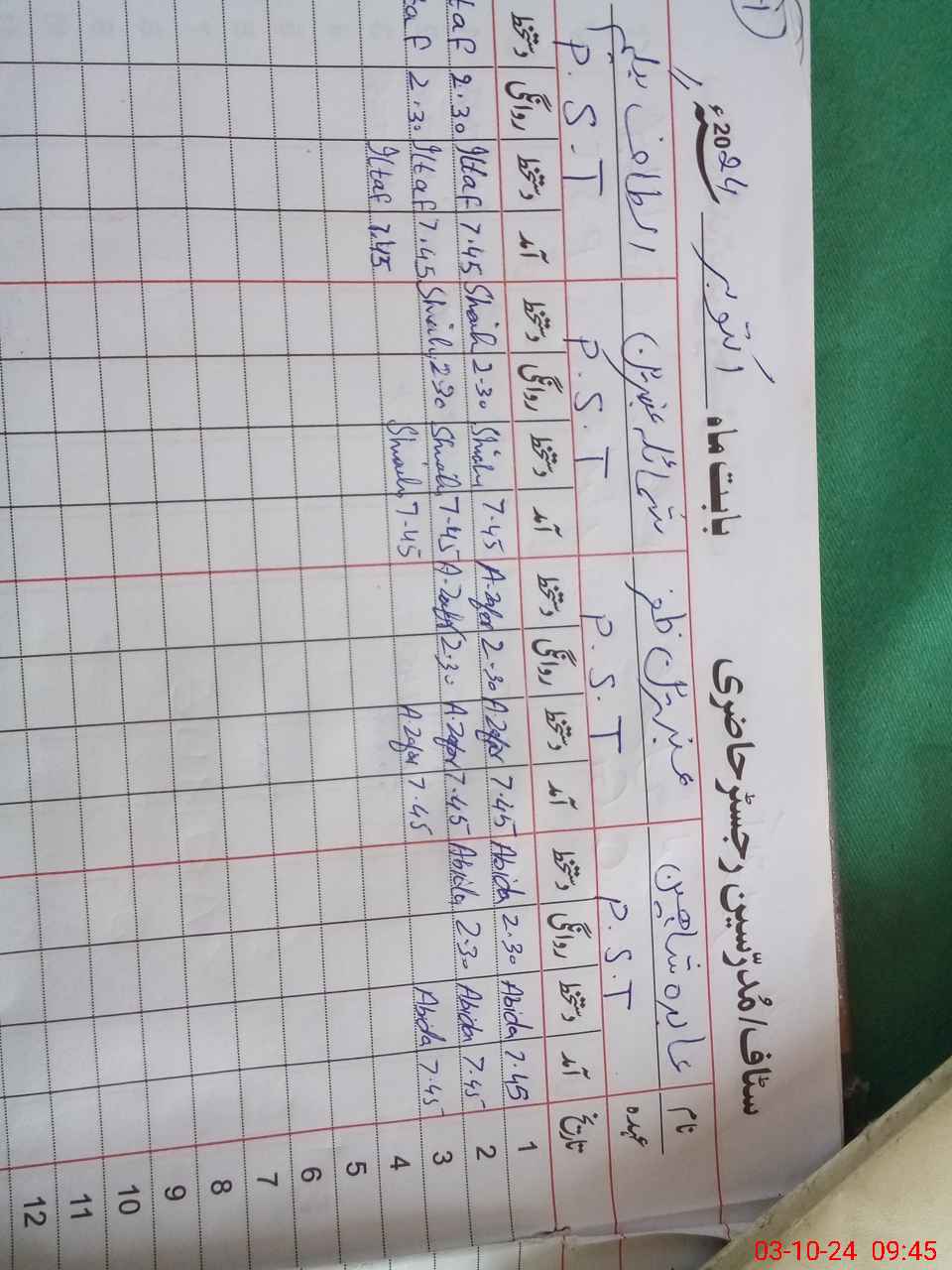 | CNIC | Full Name | Designation | R/C | Absence During Last Calender Month |