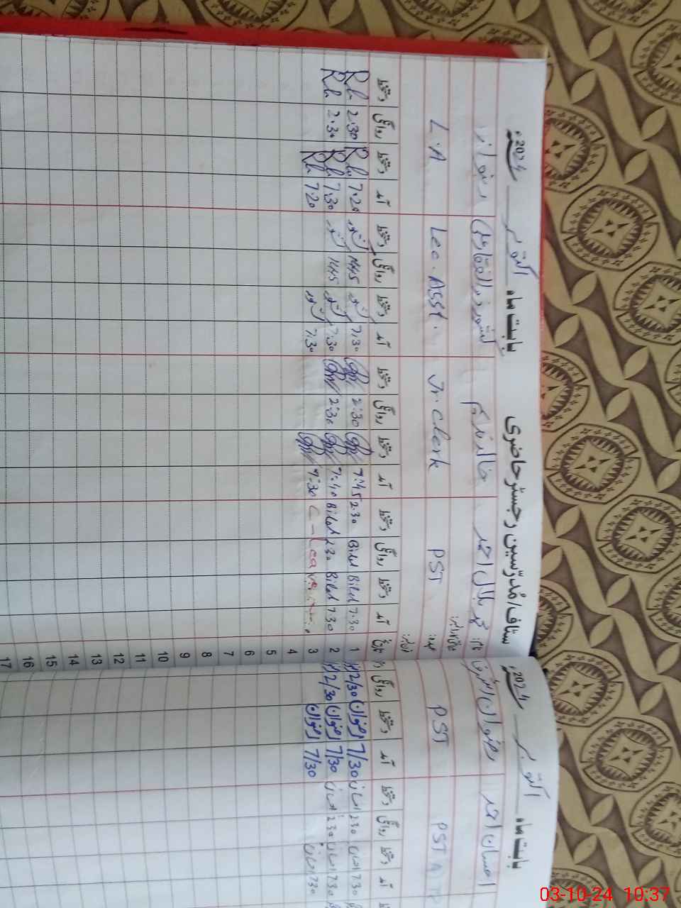 | CNIC | Full Name | Designation | R/C | Absence During Last Calender Month |