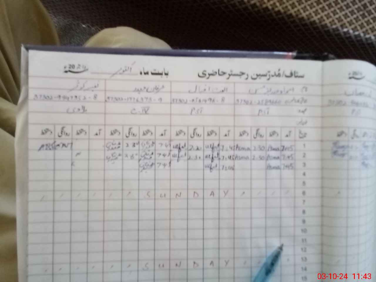 | CNIC | Full Name | Designation | R/C | Absence During Last Calender Month |
