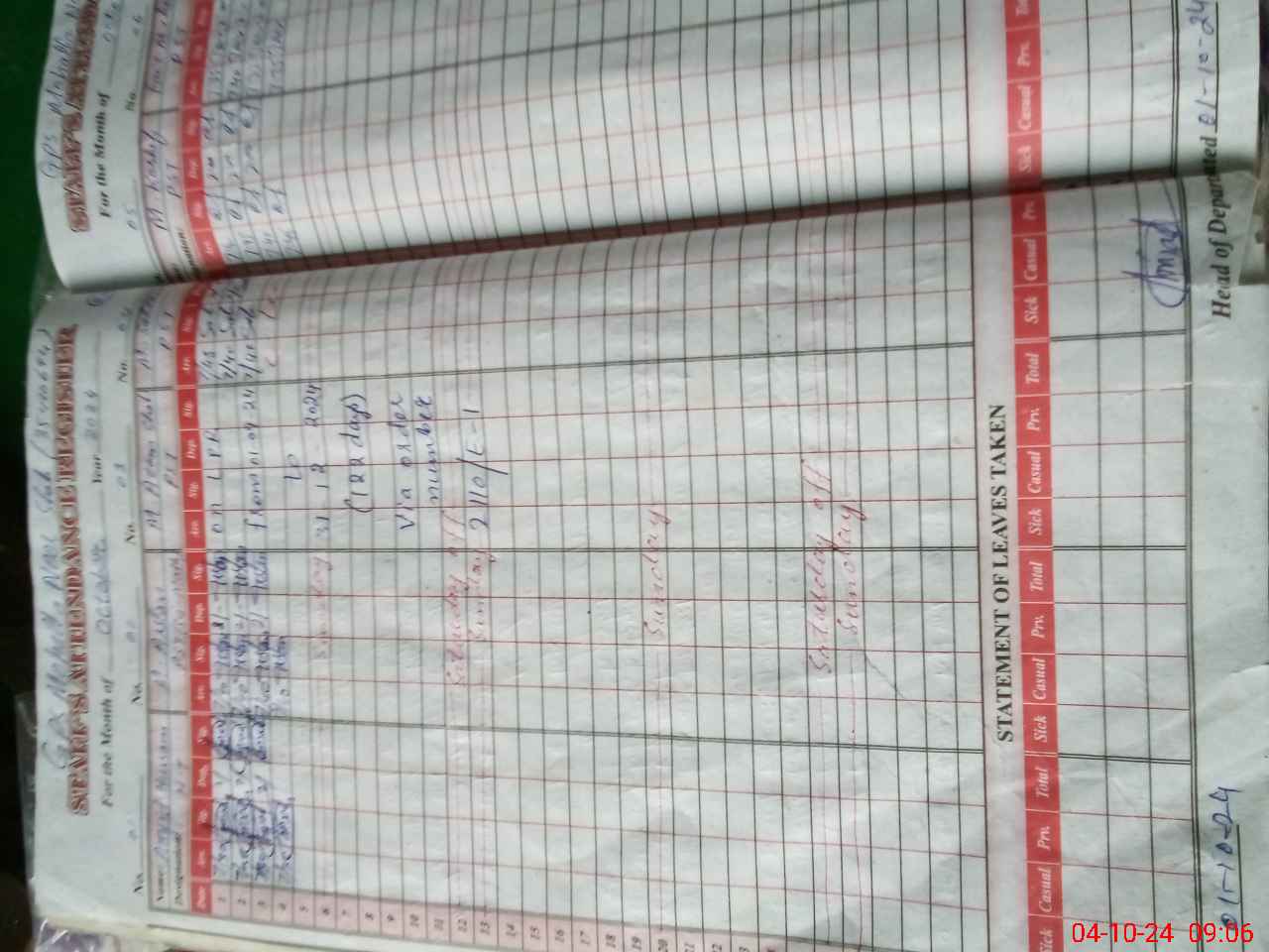 | Leave | Duty | Absent | Maternity | Medical | Ex- Pak |