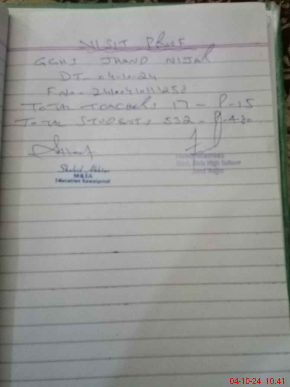 | Name: Is**** Na**** Designation: (School Headmaster's/Headmistress's) SST( SCI) Phone/Cell Number: 03**** |