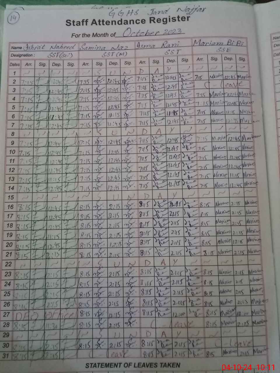 | 37**** | As**** Af**** | EST | Regular | 0 | 0 | 0 | 0 | 0 | 0 | 0 | 0 | 0 | Absent (Un-Authorized) |